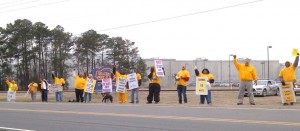 Local 1208 Secretary-treasurer Terry Slaughter, who was present at the rally, said that “the workers are the ones that put chicken on our tables and get the poultry orders out. It is hard to feed your family on $9 an hour. These employees need more money and more respect for the job that they do.”