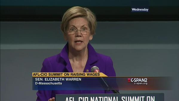Senator Elizabeth Warren was a commanding presence during the event, speaking about how raising the minimum wage is imperative to decreasing inequality. “Trickle-down economics was nothing more than helping the rich and powerful get more rich and powerful,” she said.